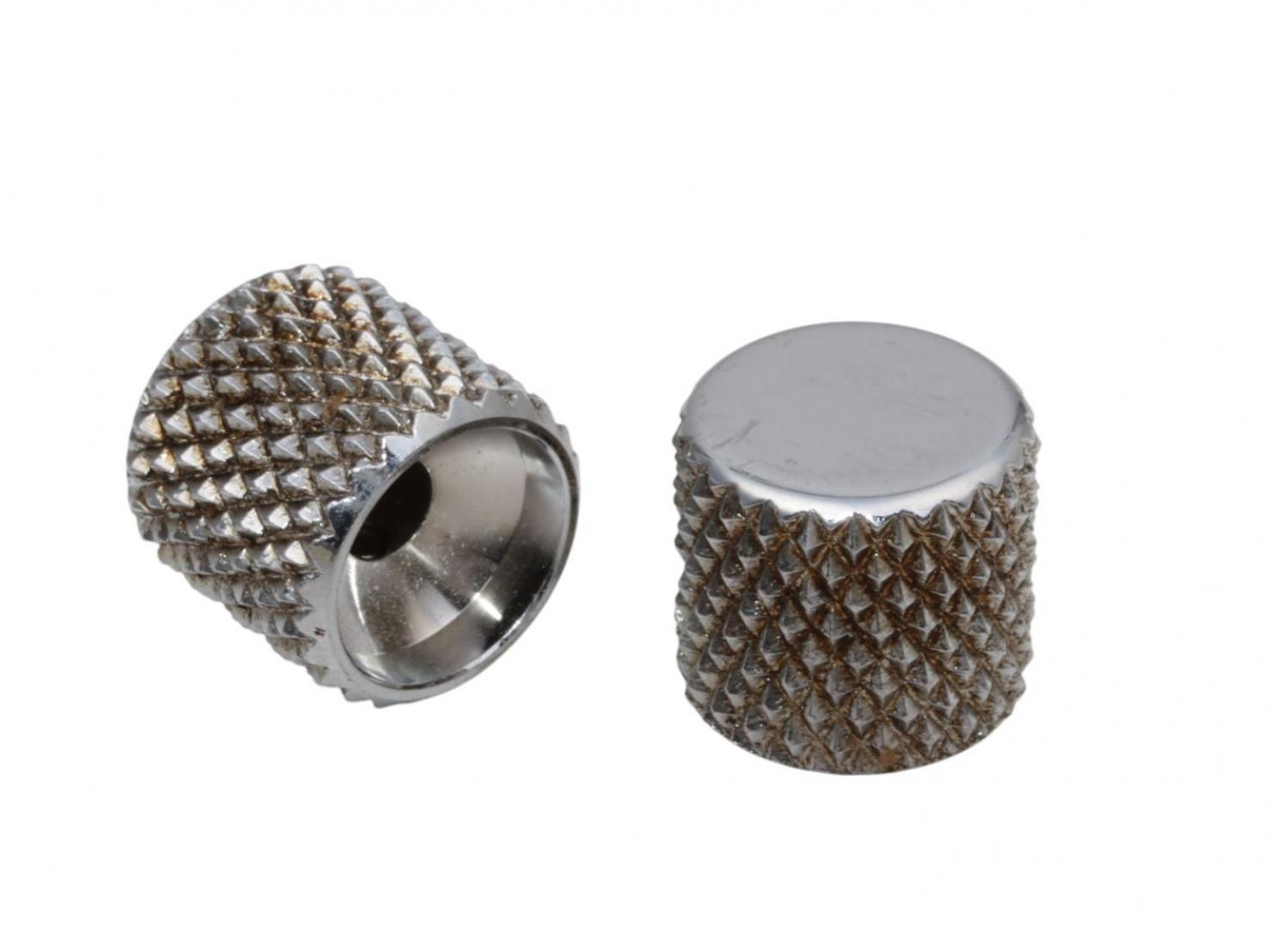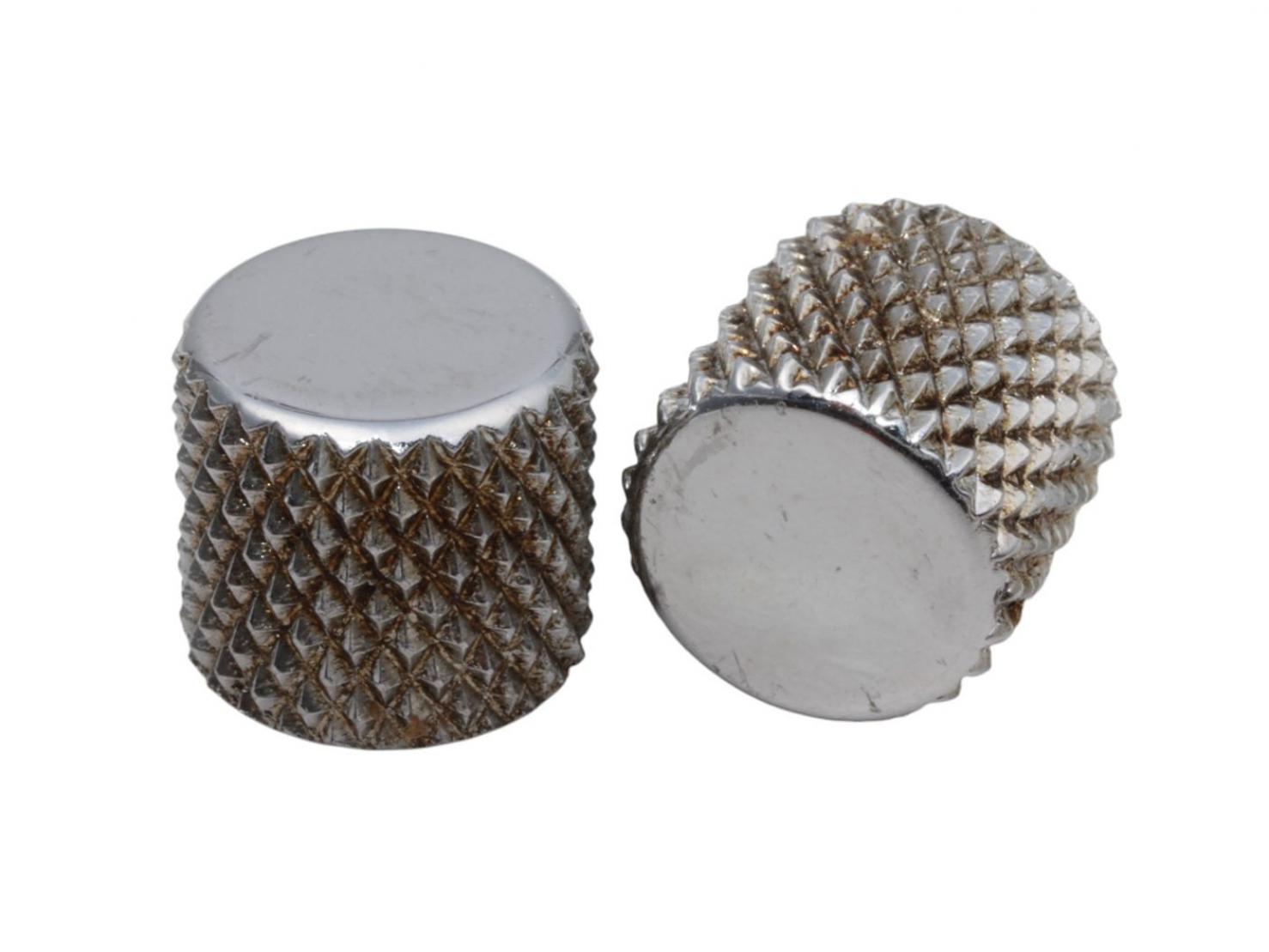 50's Vintage Style Heavy Knurled Flat Top Teleknob Set (Aluminum) Chrome plated fits CTS Solid Shaft 1/4" Fender Tele Pots