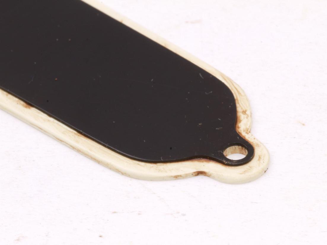 One of the finest and most vintage correct Trussrod Covers available....looks just great! Great light offwhite with the correct thickness black layer with the correct amount of vintage shine! This Trussrod covers is hard to beat in look and quality! Aged one by one by hand here in our shop!