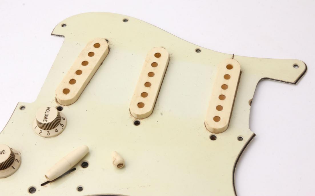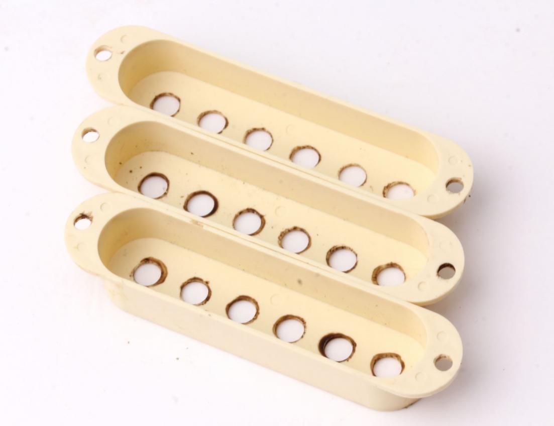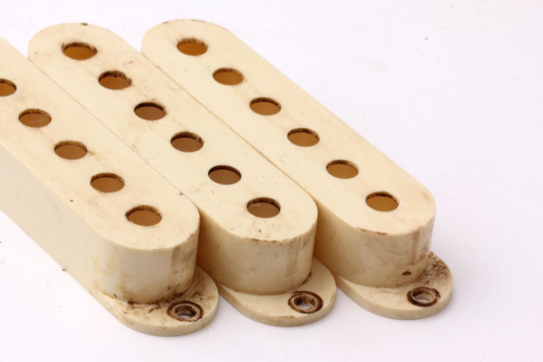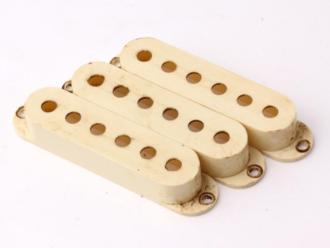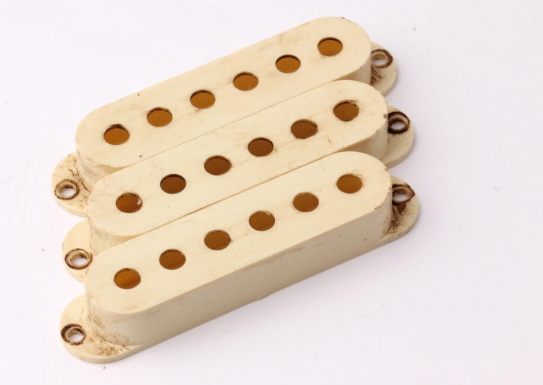 Our Bestseller...Ltd.Edt. Customcolor matched to org. Fender 1963 Plastics ...Aged "Vintage" Color Strat Plastics. One of the best Aftermarket Knobs available in this pricerange!...New color matched to org. 1963' typical slightly discolored Plastics. This color is custommade for Crazyparts