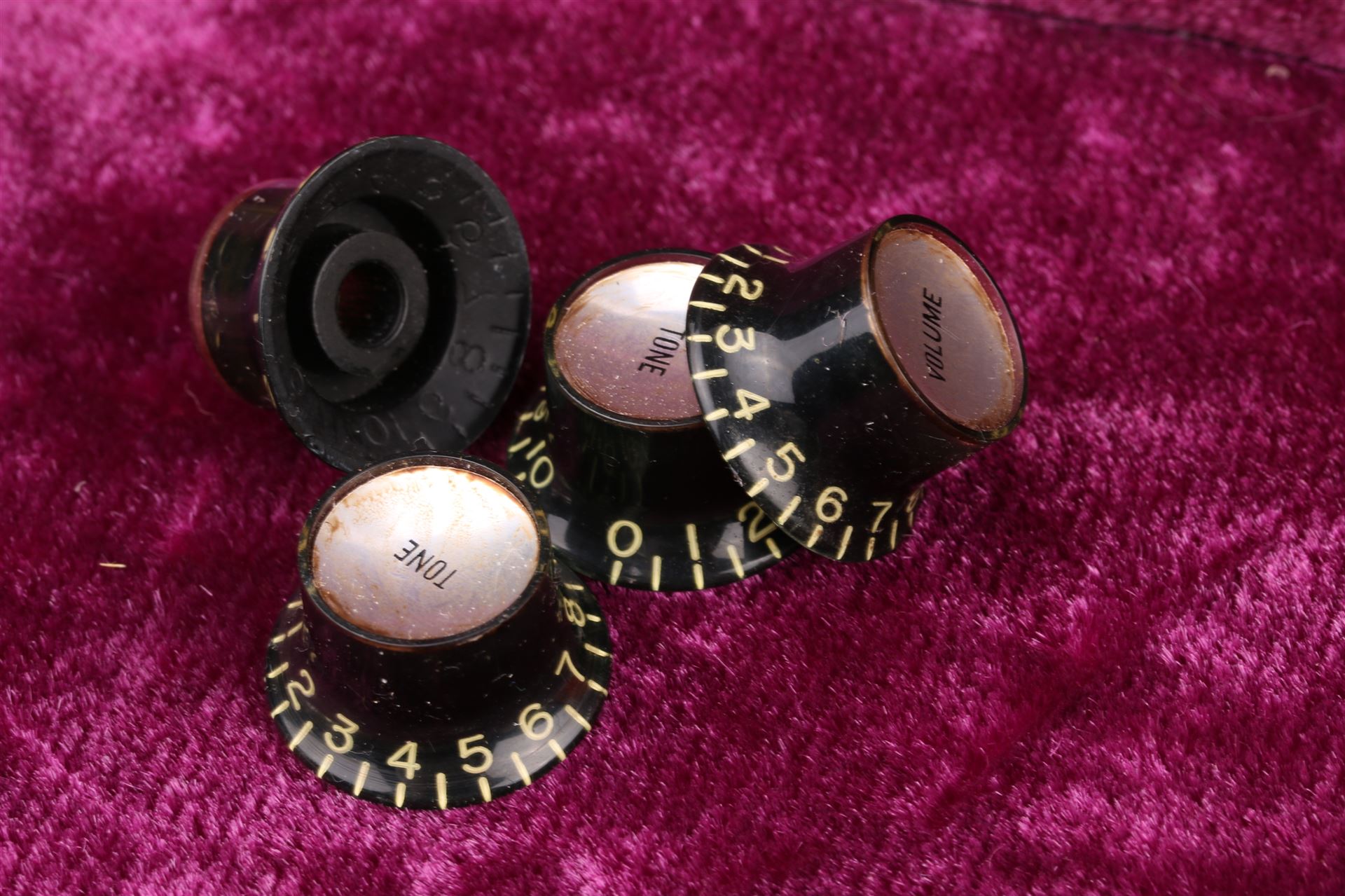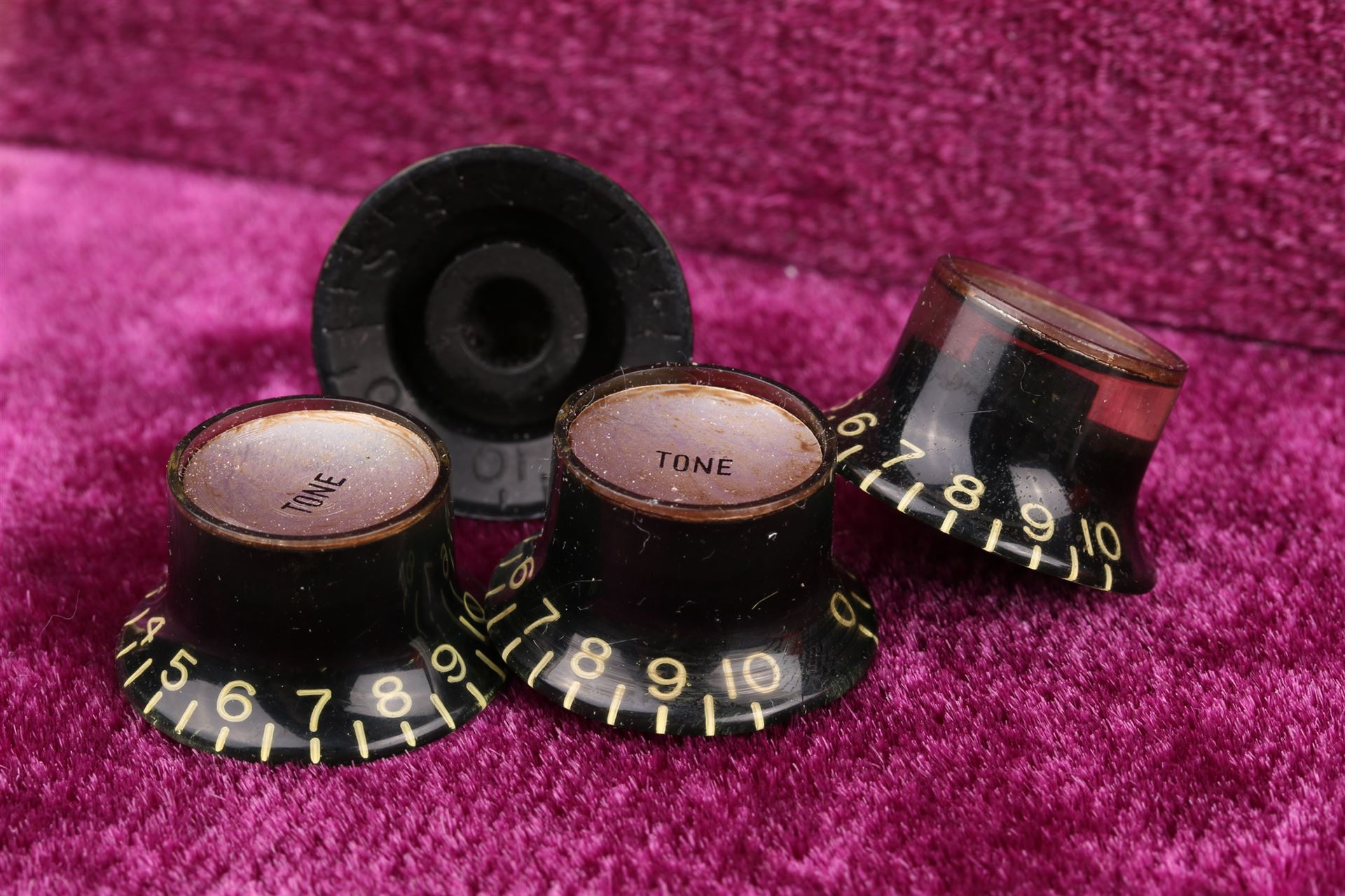 These knobs are custombuild for Crazyparts to highest Standards and all the nice details of Vintage Tophats, Embossed No's, incl. rolled edges and "Vintage" tinted color.... Replicating such details as side skirt, edge, knurls, and numbers can produce perfect knobs. The process where white paint is injected into each number with deft hand work is reminiscent of a cream decoration performed by a Parisian patissier.