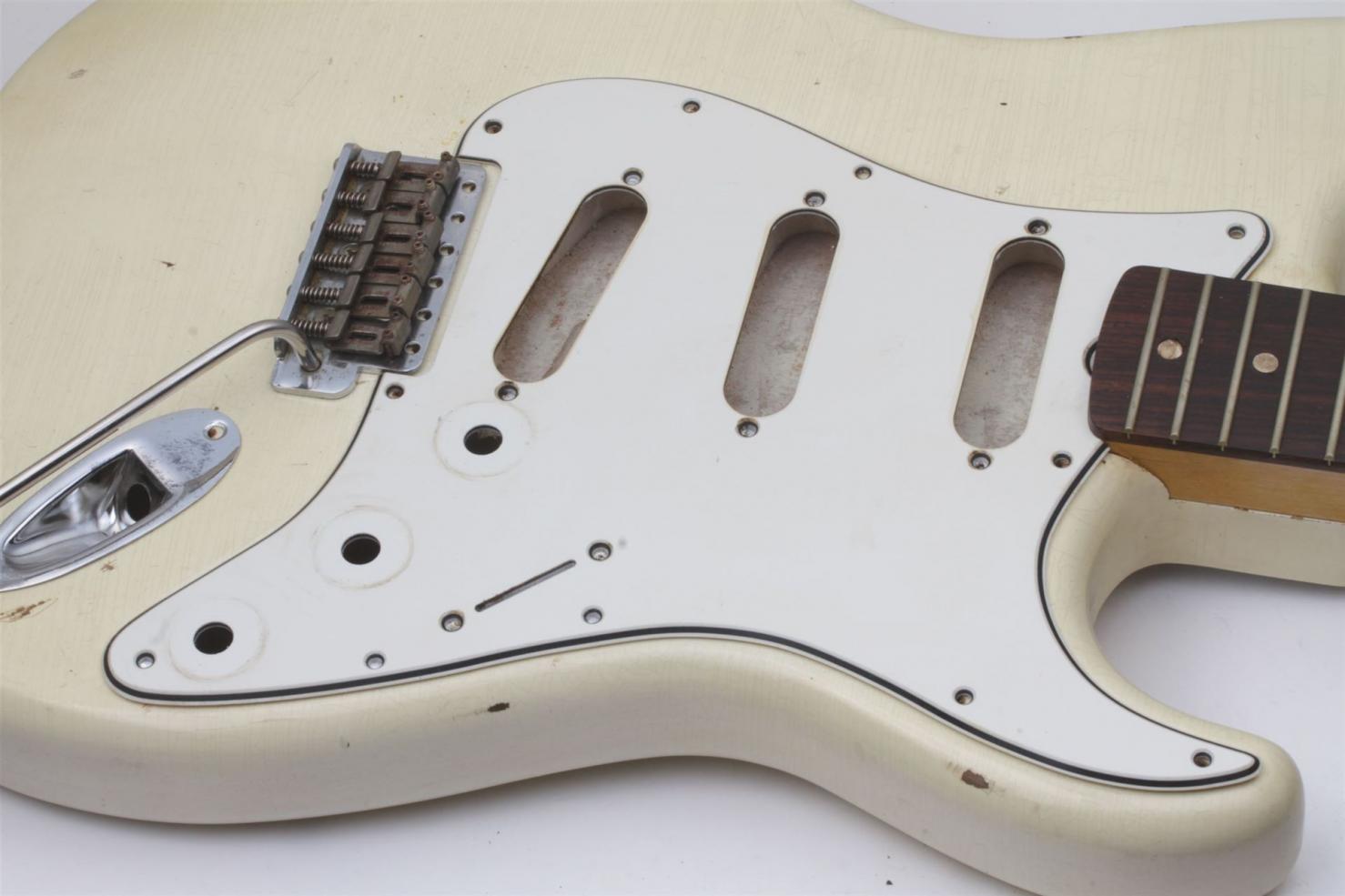 Light ageing and discoloration at pickuprountings, light dirtsimulation and pickup and screw mounting holes.