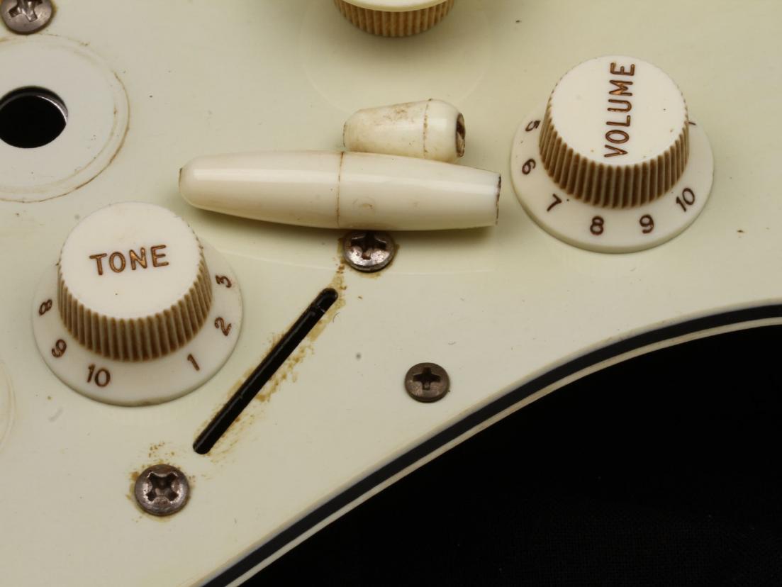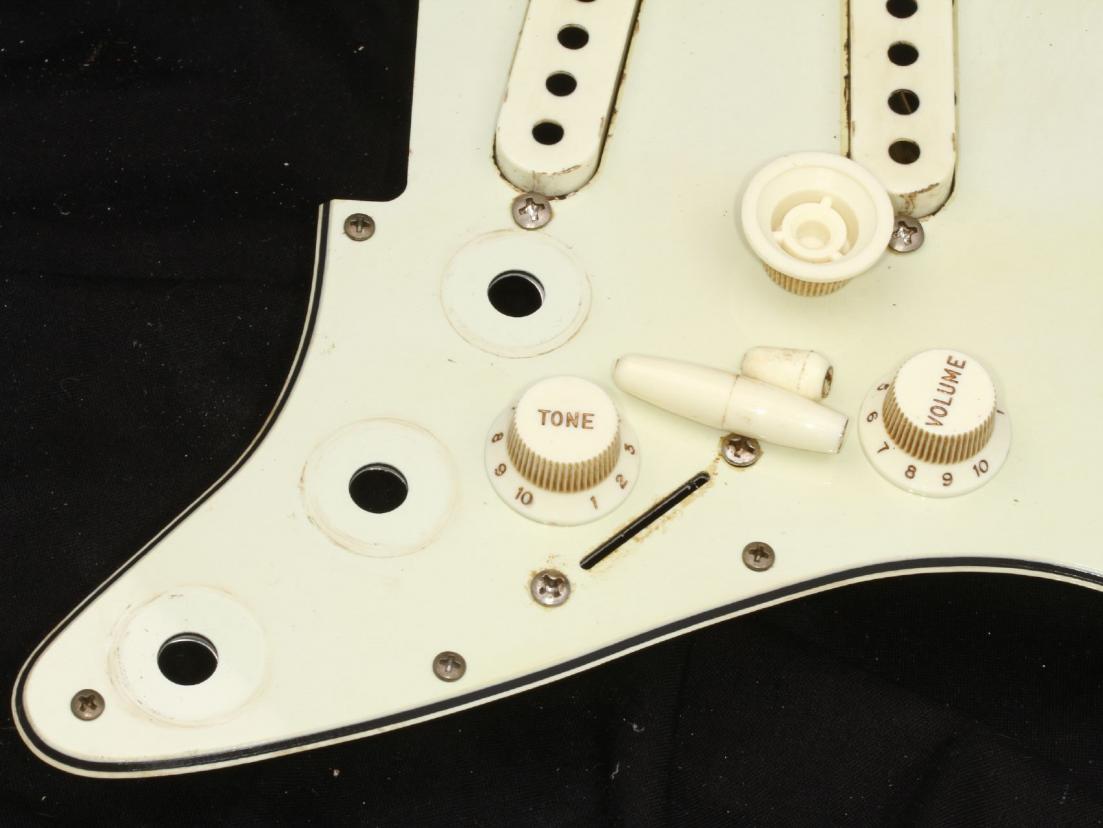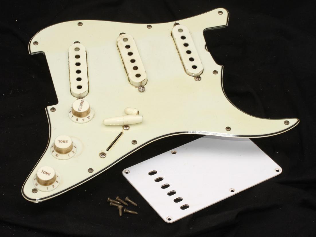 This is complete Assembly...Guard, Real Nylon Parts with Vintage correct Fonts/Numbers, and Tips...all Parts are Blacklightreacting like the old ones! Large Thin Shieldplate is also incl. plus a complete Set of aged Screws and an aged Tremolo Backplate!