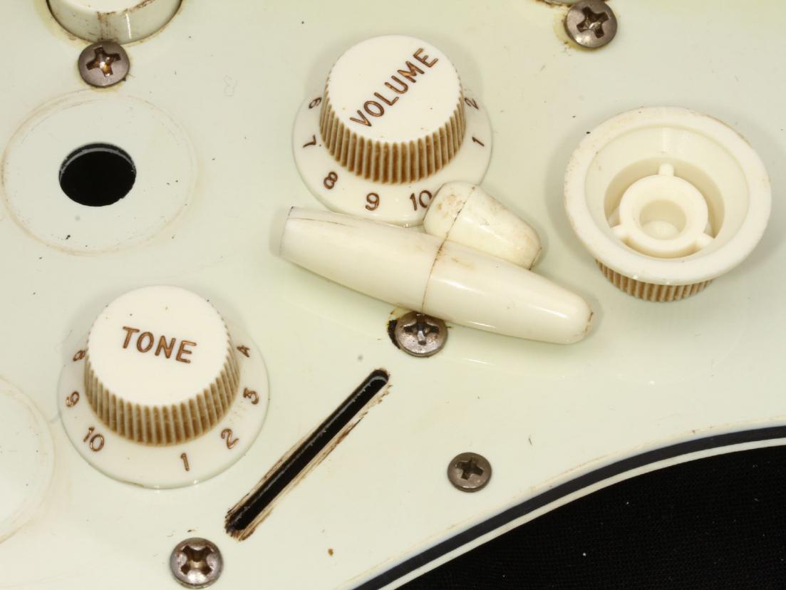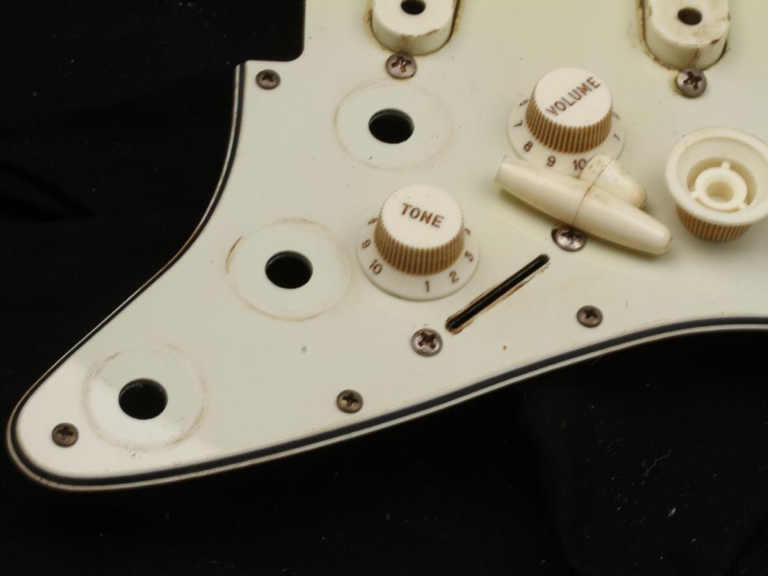This is complete Assembly...Guard, Real Nylon Parts with Vintage correct Fonts/Numbers, and Tips...all Parts are Blacklightreacting like the old ones! Large Thin Shieldplate is also incl. plus a complete Set of aged Screws and an aged Tremolo Backplate!