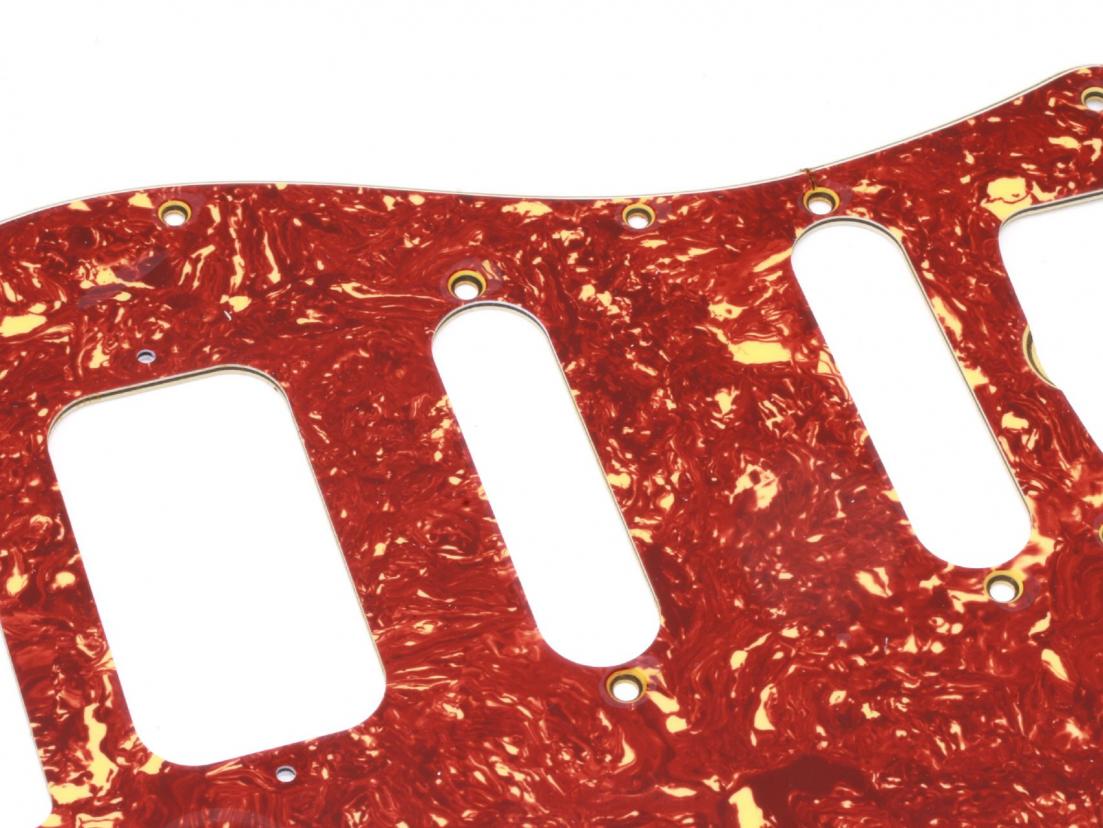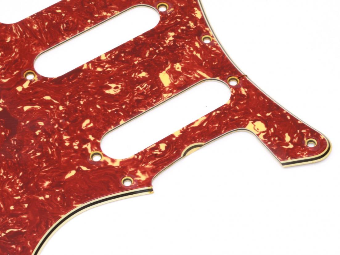 Premium Grade - Vintage style Pickguard for Strat - HSS Rounting Humbucker-Singlecoil-Singlecoil. Now 2,6mm Thickness gives a nice vintage look to the bevel edge Correct (different) Countersunk for Pickguard, Switch and Pickup Mounting Screws for perfect tight fit!