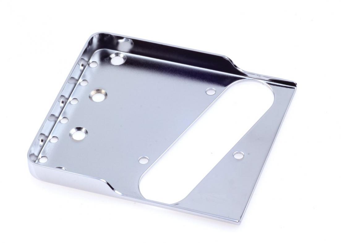 Compare to the current production Fender bridge which is made from .045 - .050 1010 hot rolled steel which is a fast and cheap way to produce bridges in short time and high qtys., sadly to say its cost “TONE , we using 0,48 (Vintage) and 0,60 thickness cold rolled steel for our bridges (when max. Tone is wanted) Cold rolled steel providing maximum stiffness, sustain and vibration transfer, protected to unwanted feedback, The cold rolled material is extremely uniform and allows for direct buffing all our bridges are copperless plated which gives you the maxium tone guarantee...very balanced tone, the highs, mids and lows balance out equally, adding warmth, and twang
