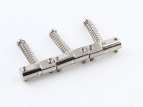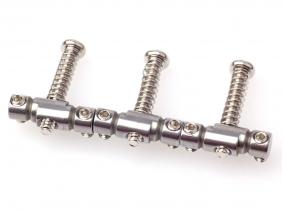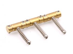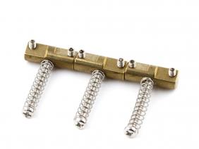 Steel: Steel has been used in early broadcasters then again in the late 50's and through the 70's. Typically in the threaded rod saddle style. Comparatively to brass, steel is a little more even with less midrange push and a tighter low and high end. This is your ideal Bakersfield tone or if you are looking to add some chime and twang to your sound. There is good presence and clarity. On certain guitars/rigs though steel can thin out a guitar because of the lower midrange.