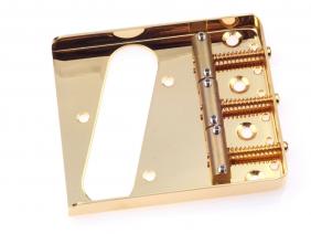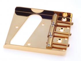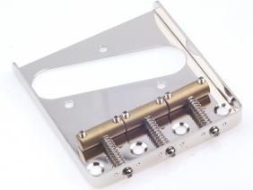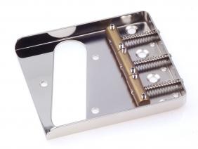 Vintage style Telecaster full wall bridges with brass saddles Ava. in Nickel, Chrome and Gold, Satin or Glossy - CRS Cold rolled steel base with 3 brass barrel non-compensated saddles/ .048"(1.2mm) plate thickness. Note saddles can slighty vary depending on ava.