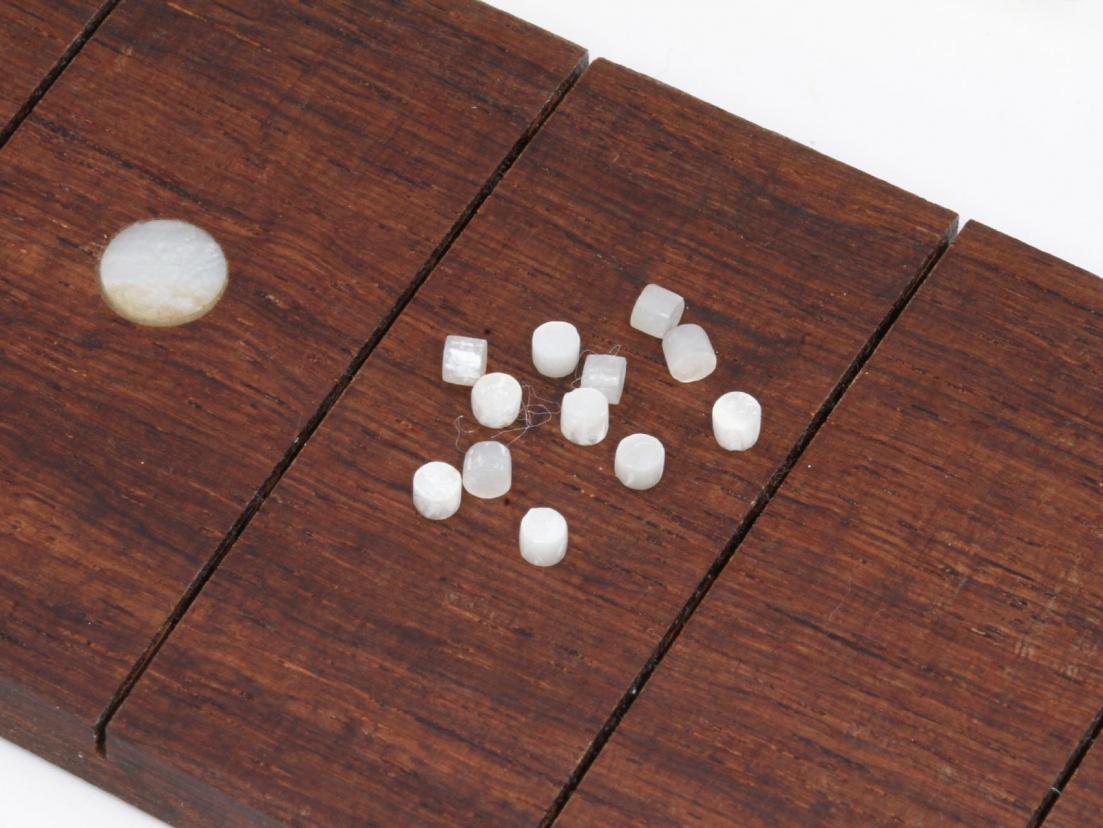 Real cellulose nitrate Dot inlays. This celluloid has the same distinctive pattern as seen on most Les Paul's from 1957 thru 1960.