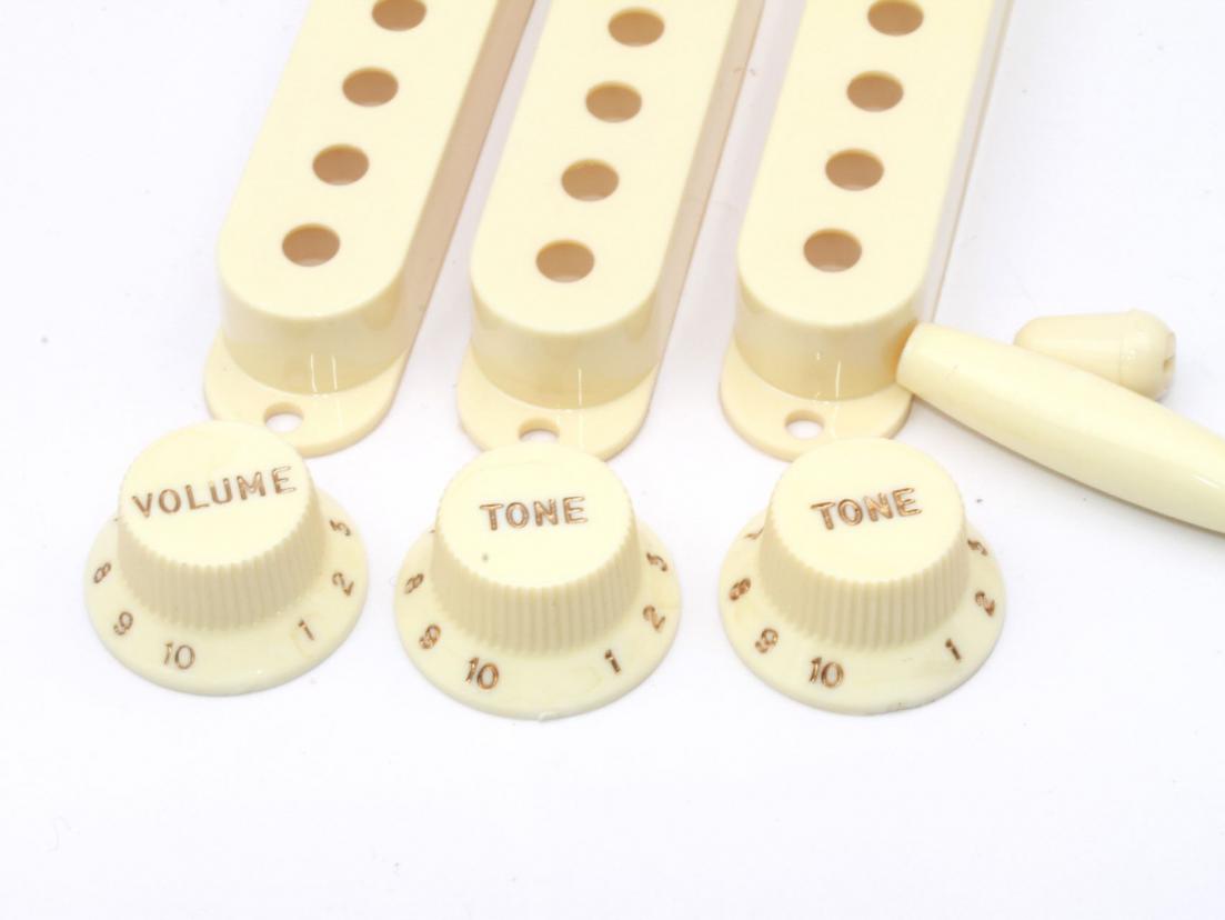 Not just simple knobs...we offer Custommade knobs to our specs (Made in Japan) incl. real Vintage CAB (Celluslose Acetate Butyrate) Knobs...the Vintage Series offers fully tined material from factory (not oversprayed) incl. a Series with slightly yellow numbers...The Vintage CAB knobs are same material like the old 50's Gibson knobs and unique in look and feel...