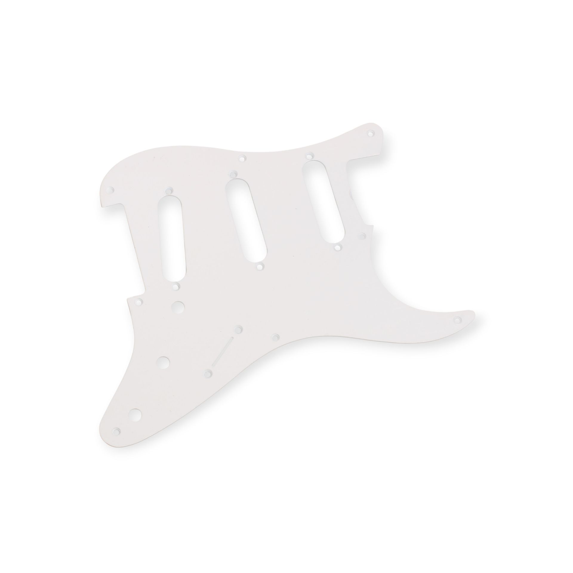 Premium Grade - 50's Vintage style White Pickguard for Strat 8 Hole Vintage stlye White pickguard for Strat 1 Ply. Made in Japan, Thickness 1,7mm This guard is the U.S. 50's template and will fit US/Mexican reissue and genuine vintage Strats These are on eof the the BEST replacement guards!