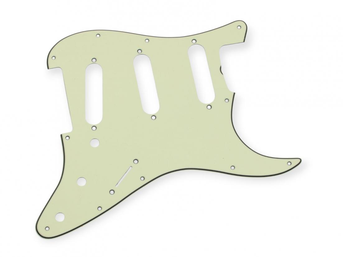 -11 Hole Vintage Mint Green a bit lighter an closer to our Celluloid pickguards for Strat, 3 Ply.- Scoop- Made in Japan, this guard is the U.S. 64 template and will fit US/Mexican Vintage reissue Series.