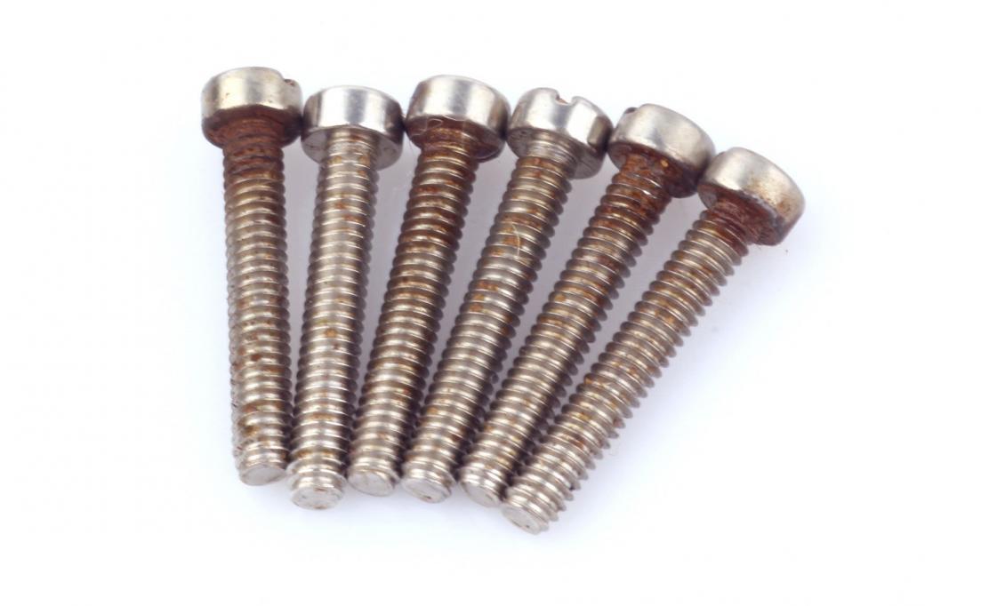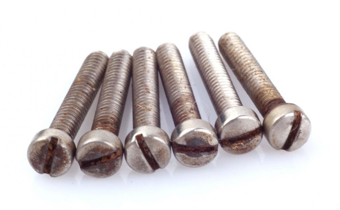 Vintage correct "Cheesehead" Humbucker/P90 Fillister Pole Screw Set (6) Nickel plated Aged
