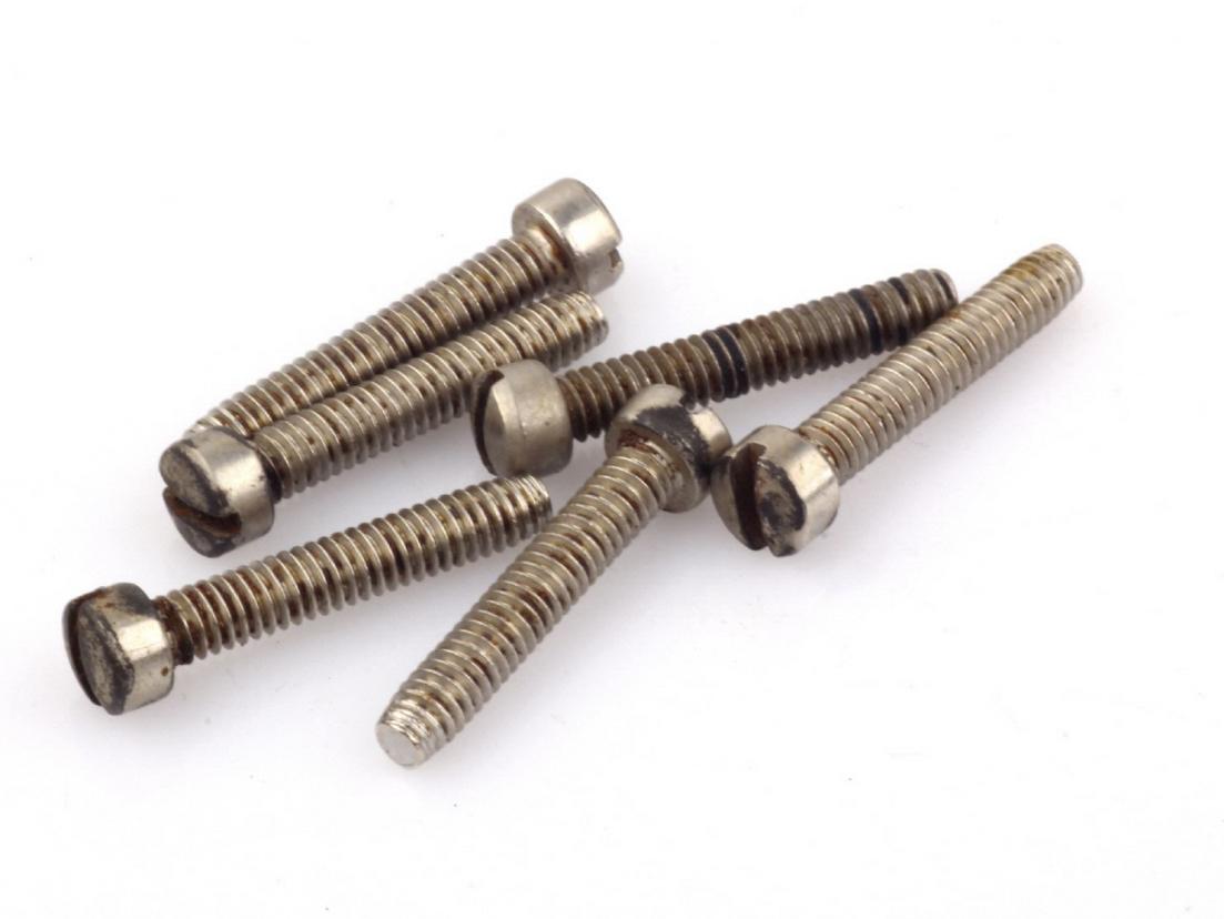 Humbucker/P90 Fillister Pole Screw Set (6) Nickel plated Aged Made in USA -Nickel plated steel fillister pole screws -5-40 x 3/4" slotted -Set of 6