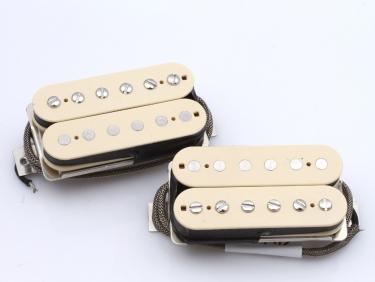 ...built and voiced as faithful reproductions of the best sounding late '59 PAF's “Unmistakable vintage character These are made with correct parts including the Plain enamel wire, vintage formular alnico magnets and the all black leads are correctly configured according to original PAFs we own. All pickups comes with custom magnetized custombuild alnico magnets for the real Vintage tone. Double Blonde or Zebra or Double Black Coils. Custommade Butyrate Bobbins with the correct Vintage color, not white, not cream just the closest color to the originals! Nice Special Square Windows at the correct position at both sides! Vintage Correct 2-Strand Braided Shieldwire, Vintage Correct PAF Base, Copper Bobbin Screws -Vintage style PAF sticker