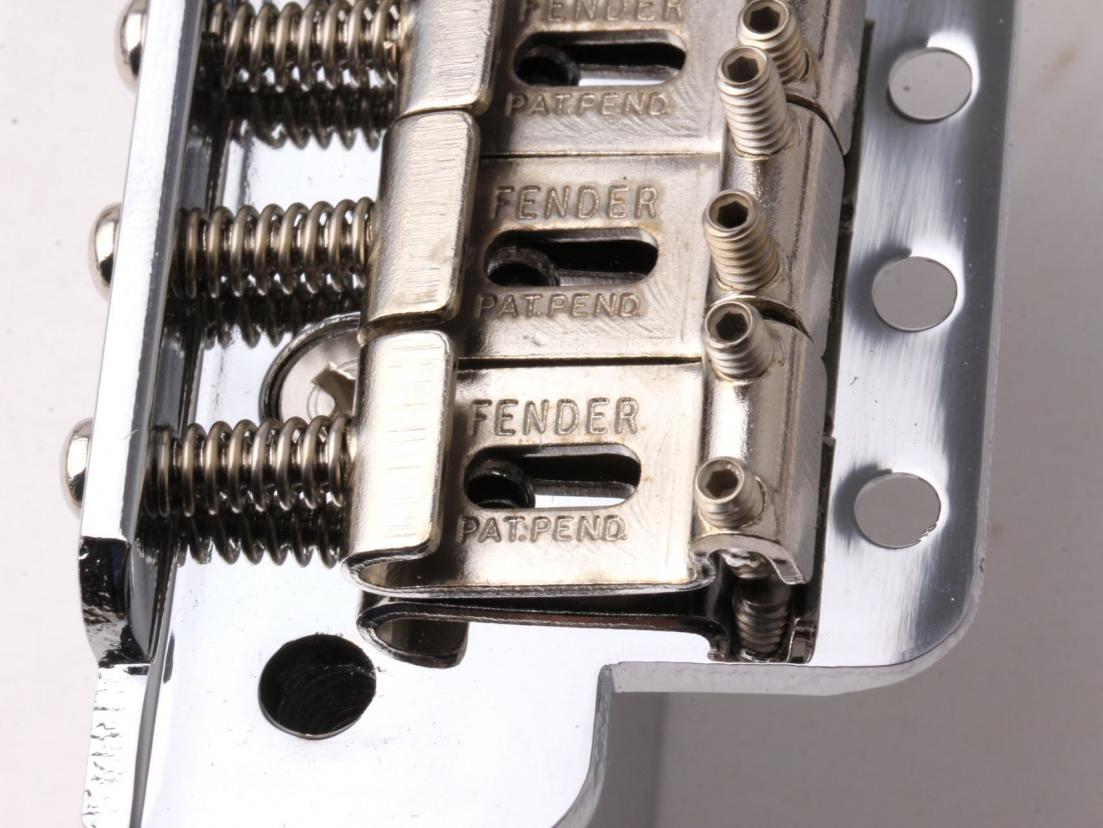 ... the worlds finest and most authentic Pre-CBS style Pat.Pend. Strat Saddles available. Vintage correct in all details...alloy, size, stamping, thickness and tooling marks! Our customers worldwide say the best sounding!
