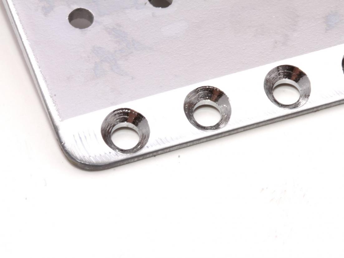 6 pivot, 2 7/32" mounting & 2 7/32" string spacing... Pre-CBS Vintage Repro Tremolo Toplate with all nice details like the real deal! Correct Lines on back and bottom, Correct Roughcut markings at Tremoloarm mounting hole and and and...