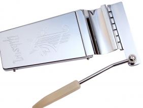 The Deluxe Gibson Vibrato (or Gibson Deluxe Vibrola, etc), released in 1963, was another long tailpiece mechanism which replaced the Gibson Vibrato. Its vibrato arm and all subsequent designs adopted the action popularized by Bigsby and Fender. Short version of Deluxe Gibson Vibrola was fitted as standard to the 1967 reissue Gibson Flying V. Also, there are two other names on the Deluxe Gibson Vibrato: "Lyre Vibrola" nicknamed after the lyre engraved on the cover plate, which was fitted to Gibson ES-335 series as an option by 1964; and "Maestro Vibrola" renamed for keeping Maestro brand, which was an option on the ES-335 by 1967.
