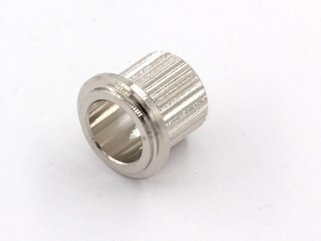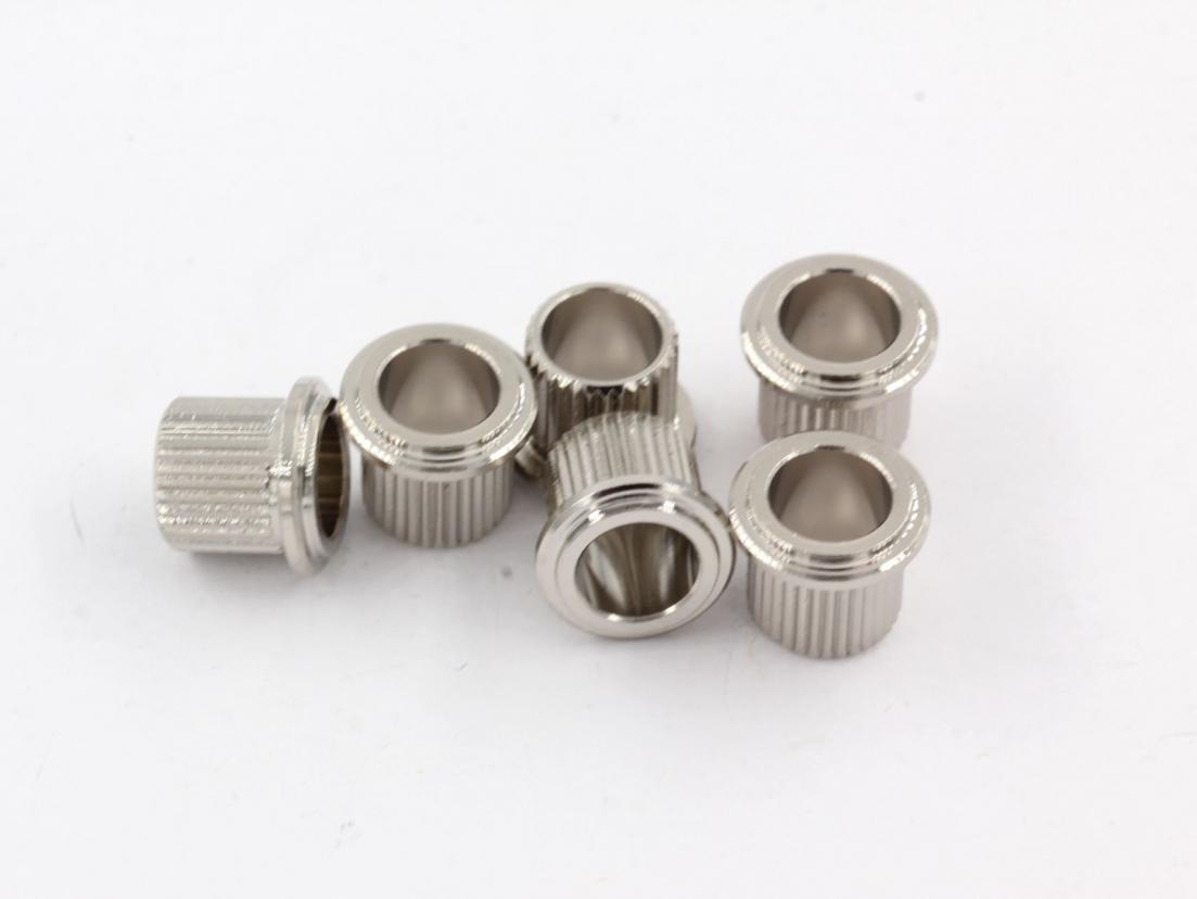 Vintage style Tunerbushing Set Press-fit bushings for 1/4"-diameter string posts. High quality machined brass. Nickel plated Set of 6