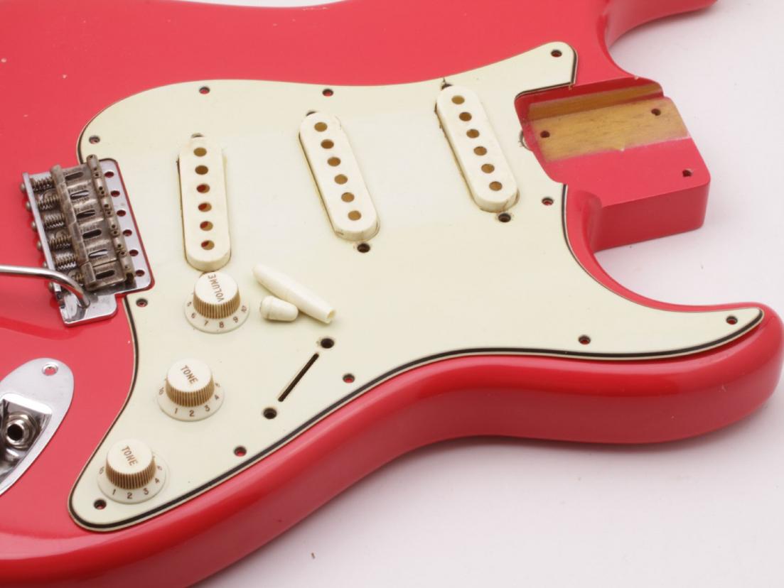 Light ageing and discoloration at pickuprountings, light dirtsimulation and pickup and screw mounting holes.