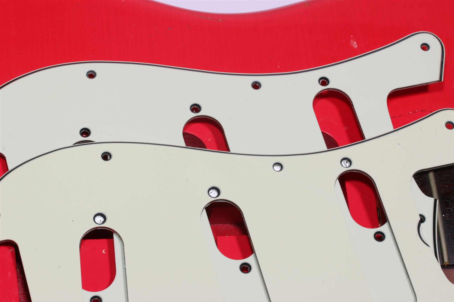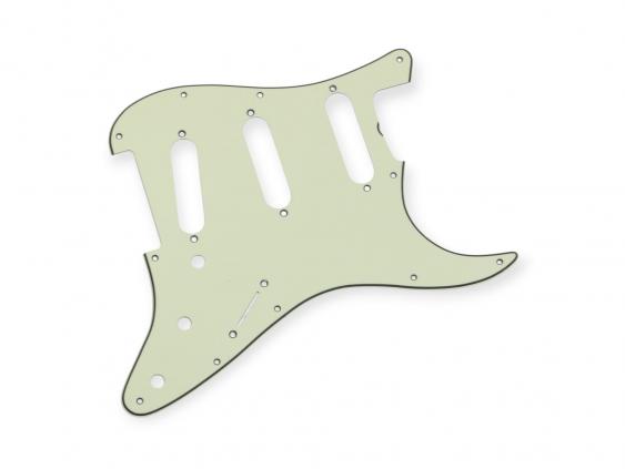 New for June 23 our "Green23" Guard...amazing close to the old Fender Celluloid/Nitrate Guards! The best Green guard (ABS) we've ever had...great specs, Color, Vintage Bevel, different deep countersunk holes for pickups and mounting Screws, smooth bevel, light opac toplayer and ligther color bottom like the real deal!