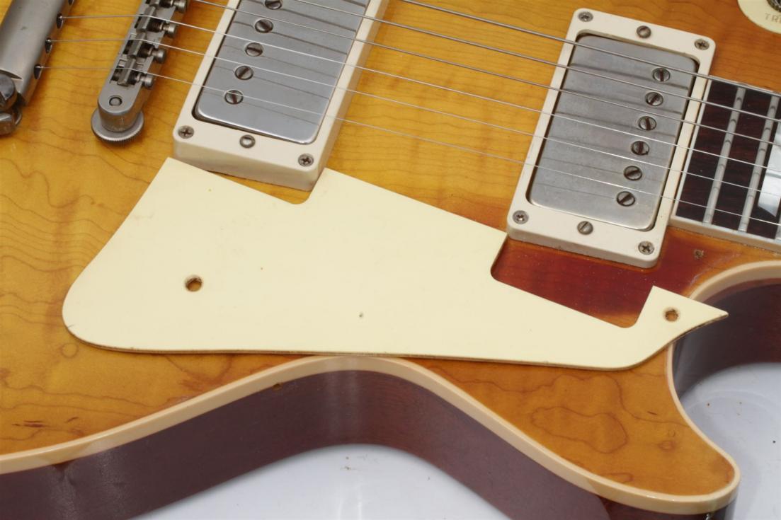 ...correct .09 sheet material in a beautiful shade of cream (that's not pink, as some Gibson plastic tends to be) right down to the authentic chatter marks along the edge of the guard. The typical playing areas are discolored, the bevel is nice soften rounded like the original guards.