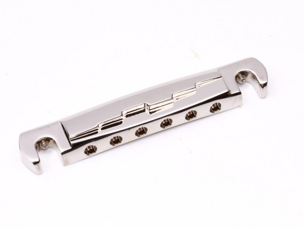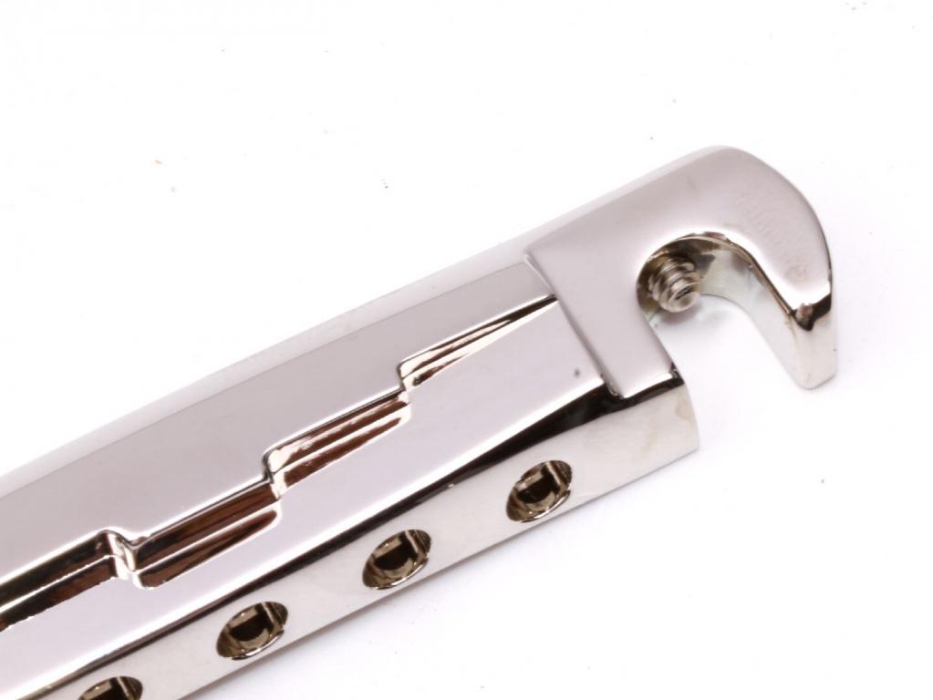 This complete new designed bridge is CNC machined from 7075 aircraft grade lightweight aluminum bar stock. Many players using the Gibson Lightning Bar bridge (Zink) in case of the better intonation compare to the Gibson Aluminum Wraparound bridge which is build from Aluminum and sounds more open and overall more naturally.Our new brigde combines both advantages, perfect Intonation and best sound guarantee in case of the Aluminum!
