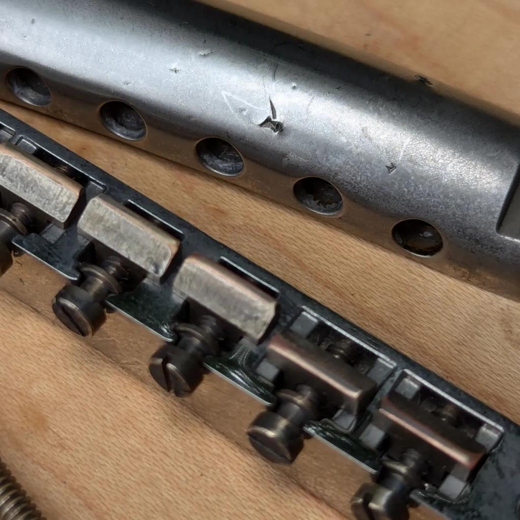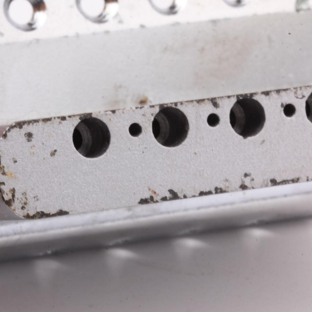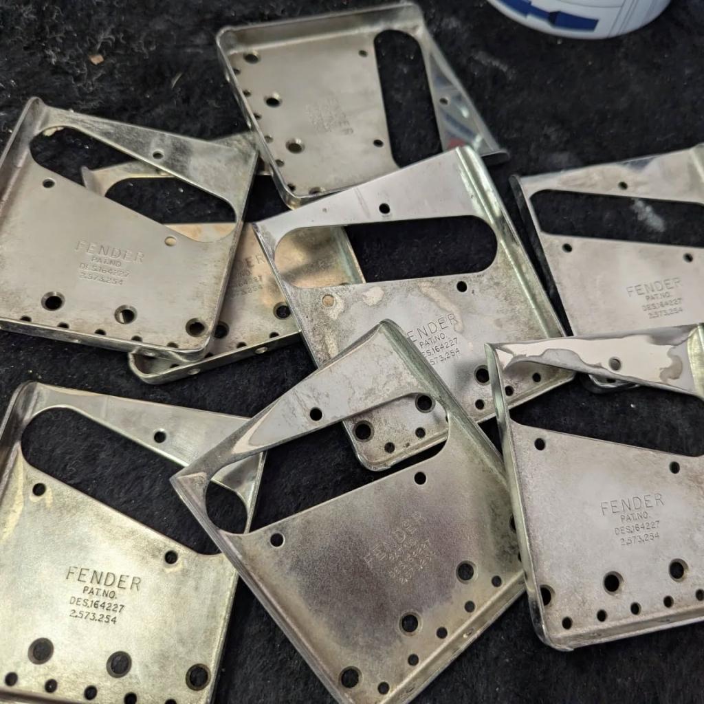 Compare to the current production Fender bridge which is made from .045 - .050 1010 hot rolled steel which is a fast and cheap way to produce bridges in short time and high qtys., sadly to say its cost “TONE , we using 0,48 (Vintage) and 0,60 thickness cold rolled steel for our bridges (when max. Tone is wanted)