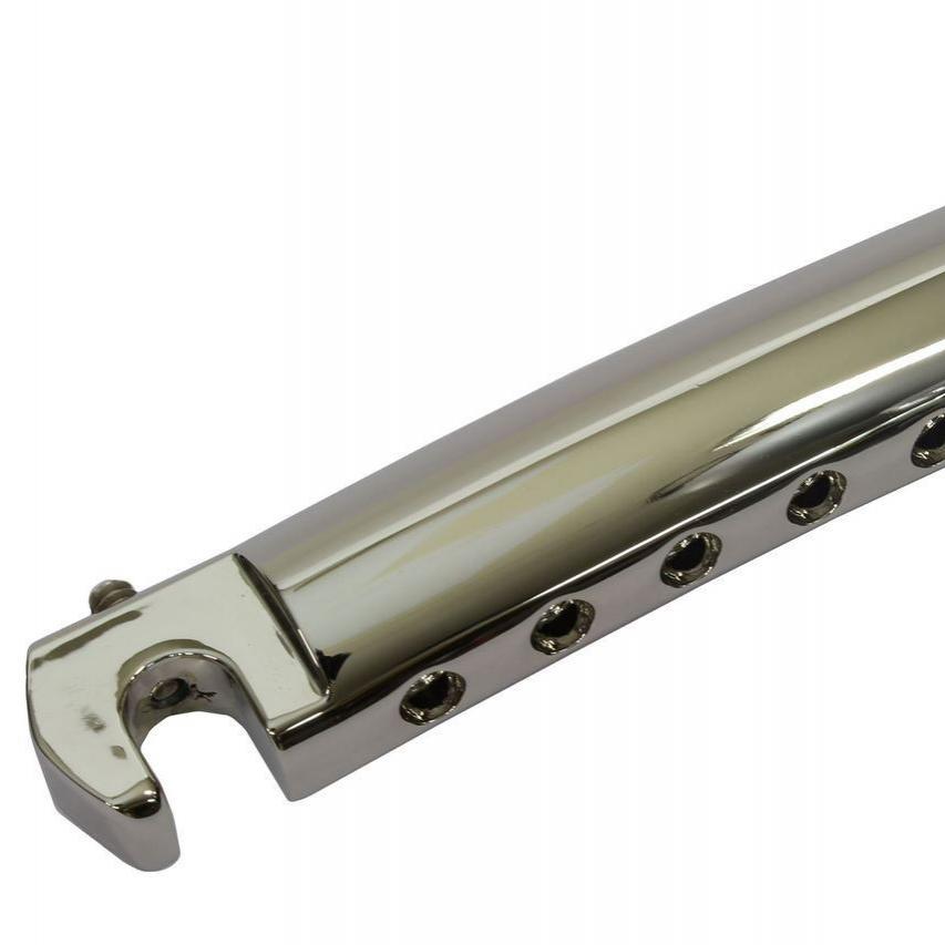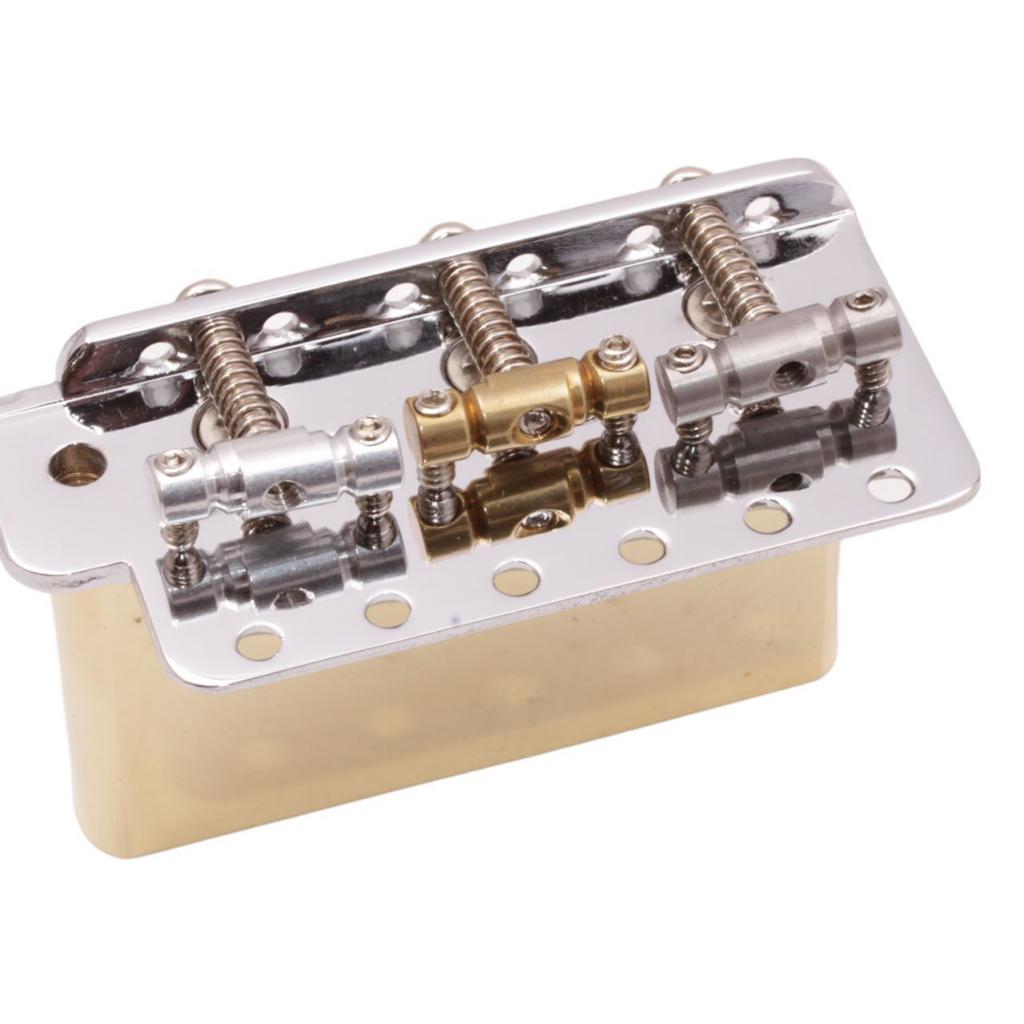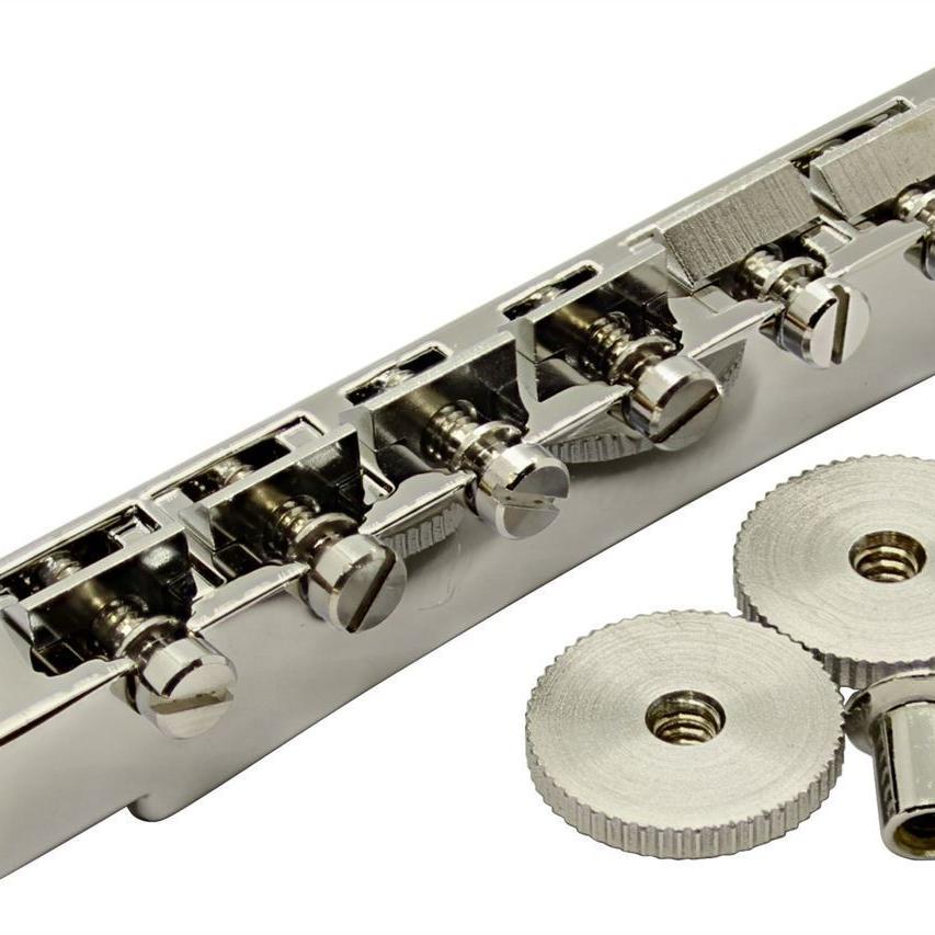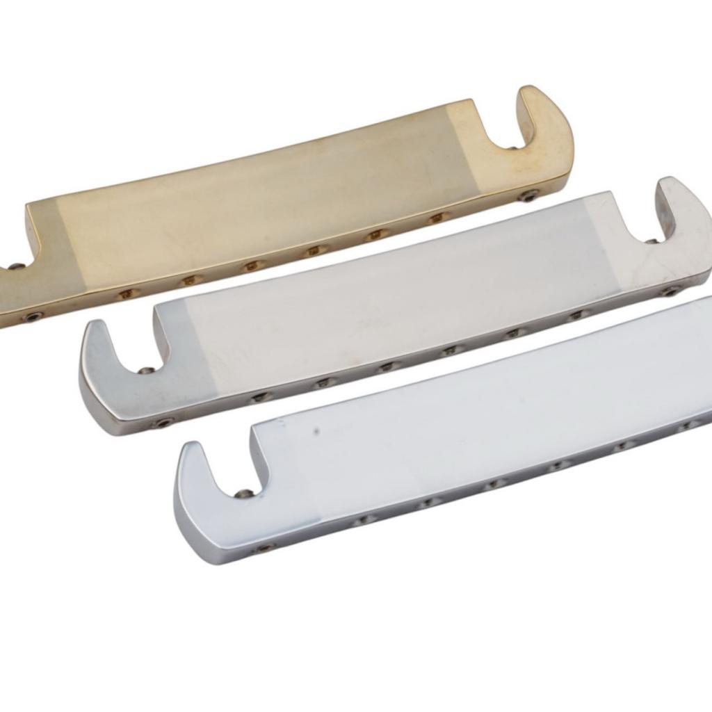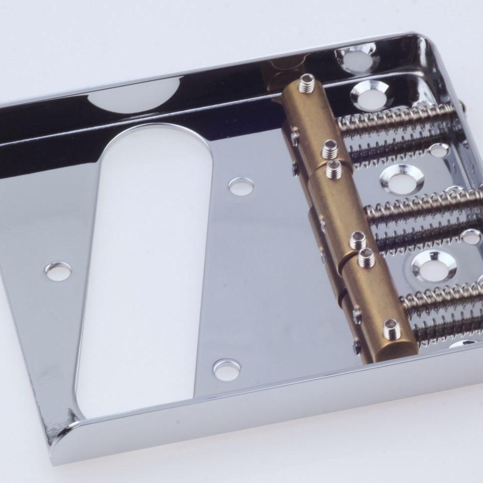 Cold rolled steel providing maximum stiffness, sustain and vibration transfer, protected to unwanted feedback, The cold rolled material is extremely uniform and allows for direct buffing all our bridges are copperless plated which gives you the maxium tone guarantee.