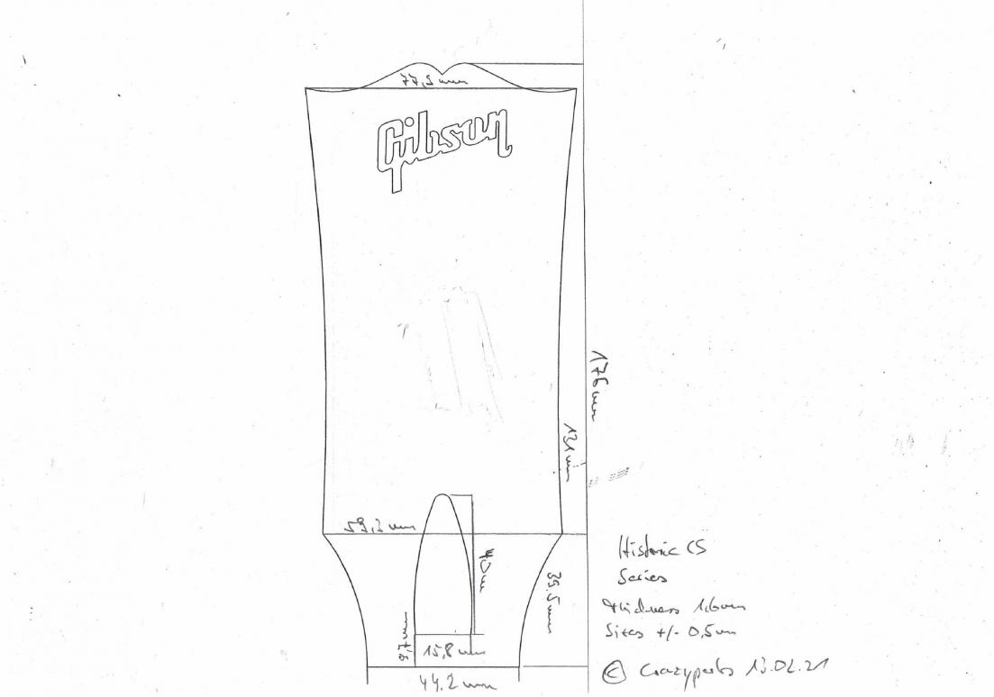 Les Paul Historic size (Small 59) without Tunerholes! LTD quanities. Made of vulcan fibre with real Mother of Pearl Inlay