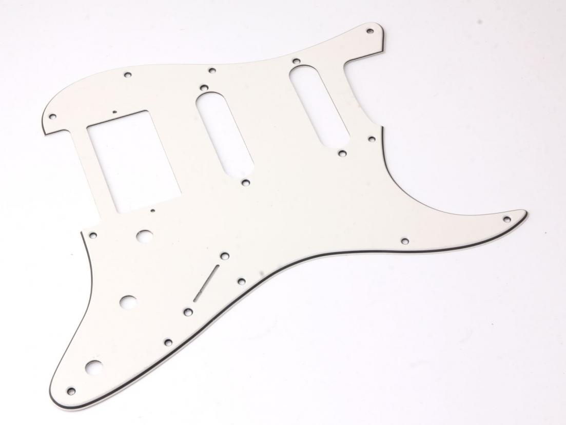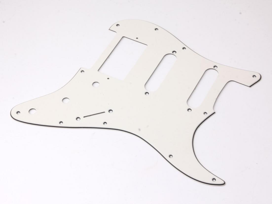 Premium Grade - 64 Vintage Parchment Pickguard for Strat - HSS Rounting Humbucker-Singlecoil-Singlecoil. Now 2,6mm Thickness gives a nice vintage look to the bevel edge Correct (different) Countersunk for Pickguard, Switch and Pickup Mounting Screws for perfect tight fit!