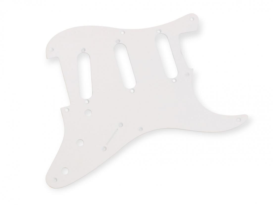 Premium Grade - 50's Vintage style White Pickguard for Strat 8 Hole Vintage stlye White pickguard for Strat 1 Ply. Made in Japan, Thickness 1,7mm This guard is the U.S. 50's template and will fit US/Mexican reissue and genuine vintage Strats These are on eof the the BEST replacement guards!