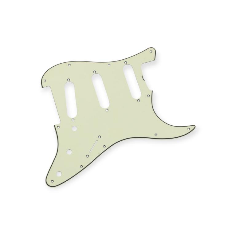 -11 Hole Vintage Mint Green a bit lighter an closer to our Celluloid pickguards for Strat, 3 Ply.- Scoop- Made in Japan, this guard is the U.S. 62 template and will fit US/Mexican Vintage reissue Series.