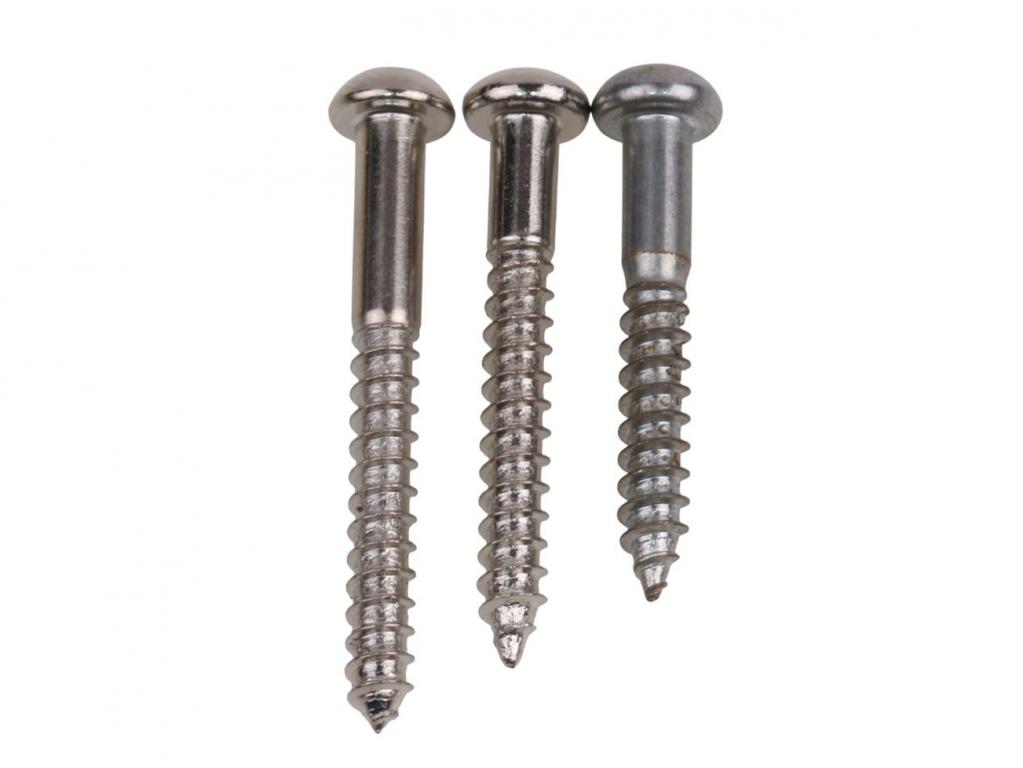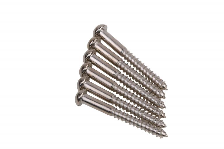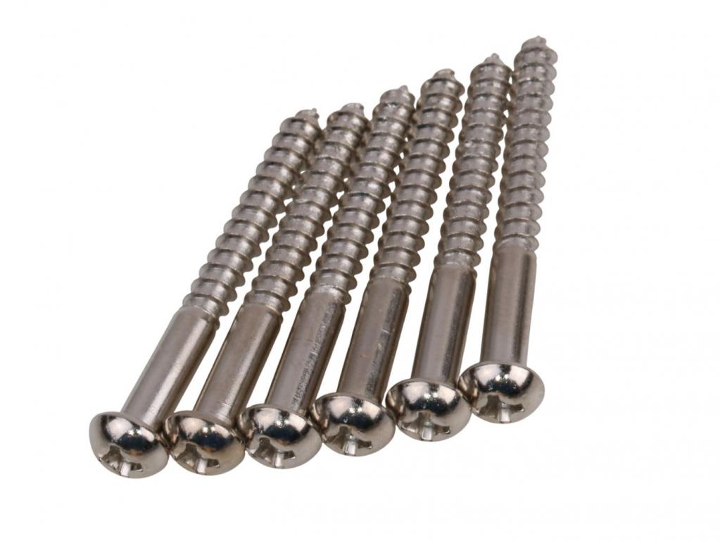 Set of 6 Nickel plated Vintage style Tremolo mounting Screws...we tried to make these screws as close as possible with the nowadays possibility, the size is like the original screws used in the early Pre-CBS guitars. Overall aprx. 33,4mm long build from heat-treated hardened steel, they increase sustain and clarity. aprx. Diameter 3,4mm thread lenght 31mm.