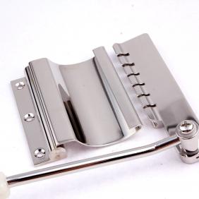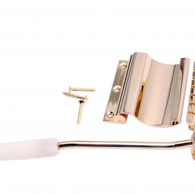 The Deluxe Gibson Vibrato (or Gibson Deluxe Vibrola, etc), released in 1963, was another long tailpiece mechanism which replaced the Gibson Vibrato. Its vibrato arm and all subsequent designs adopted the action popularized by Bigsby and Fender. Short version of Deluxe Gibson Vibrola was fitted as standard to the 1967 reissue Gibson Flying V. Also, there are two other names on the Deluxe Gibson Vibrato: "Lyre Vibrola" nicknamed after the lyre engraved on the cover plate, which was fitted to Gibson ES-335 series as an option by 1964; and "Maestro Vibrola" renamed for keeping Maestro brand, which was an option on the ES-335 by 1967.